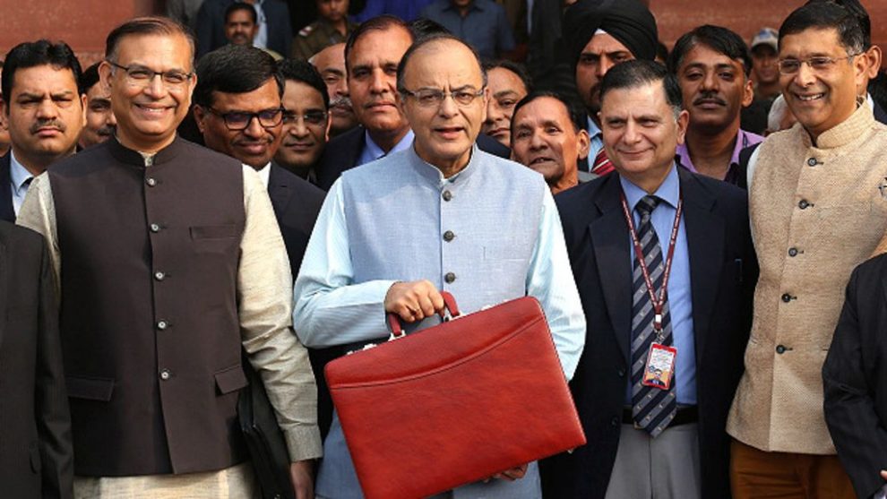 नई दिल्ली । वित्त मंत्री अरुण जेटली ने गुरुवार को संसद में बजट पेश कर दिया। यह केंद्र सरकार का अंतिम पूर्ण बजट था। अपने पिटारे से वित्त मंत्री ने जहां गांव, गरीब, किसान और महिलाओं को फायदे पहुंचाए वहीं नौकरीपेशा और आम आदमी की उम्मीदों पर पानी फेर दिया। वित्त मंत्री ने बजट में स्वास्थ्य, परिवहन, शिक्षा और कृषि से जुड़ी महत्वपूर्ण घोषणाएं की हैं।